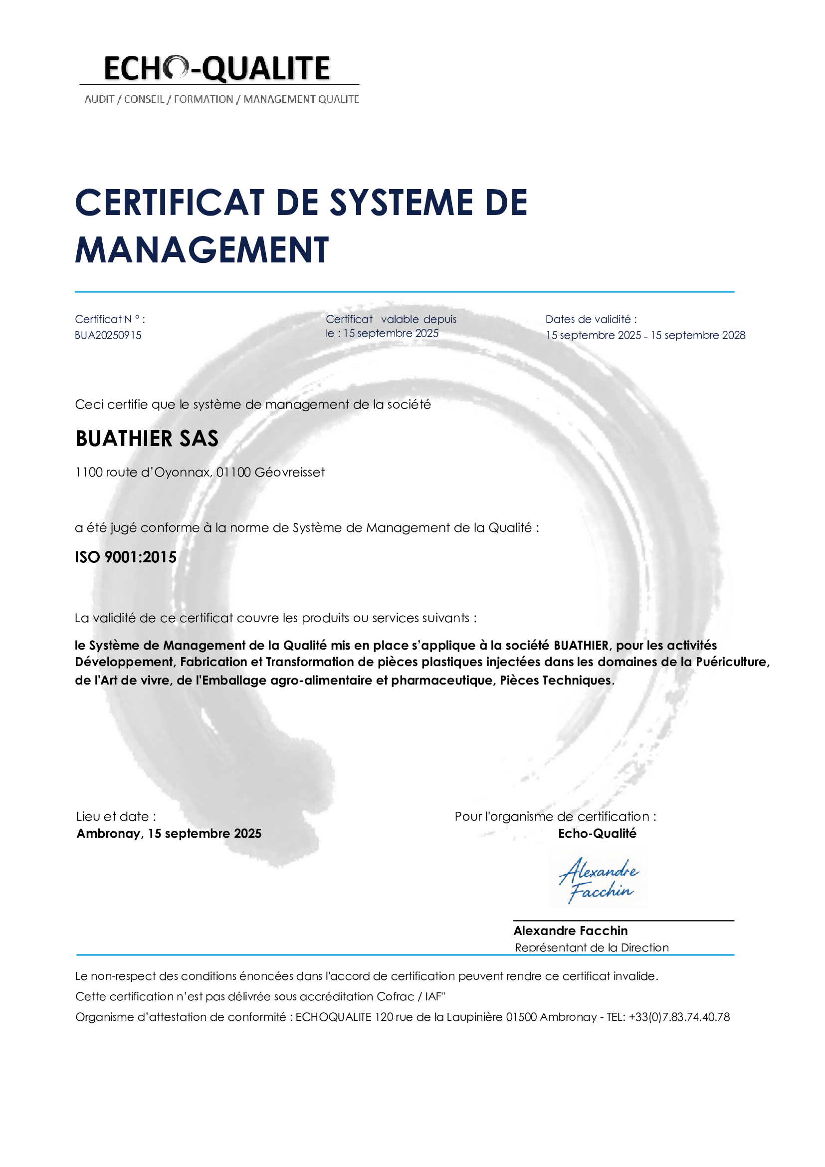 Nous sommes certifiés ISO 9001 V2015.