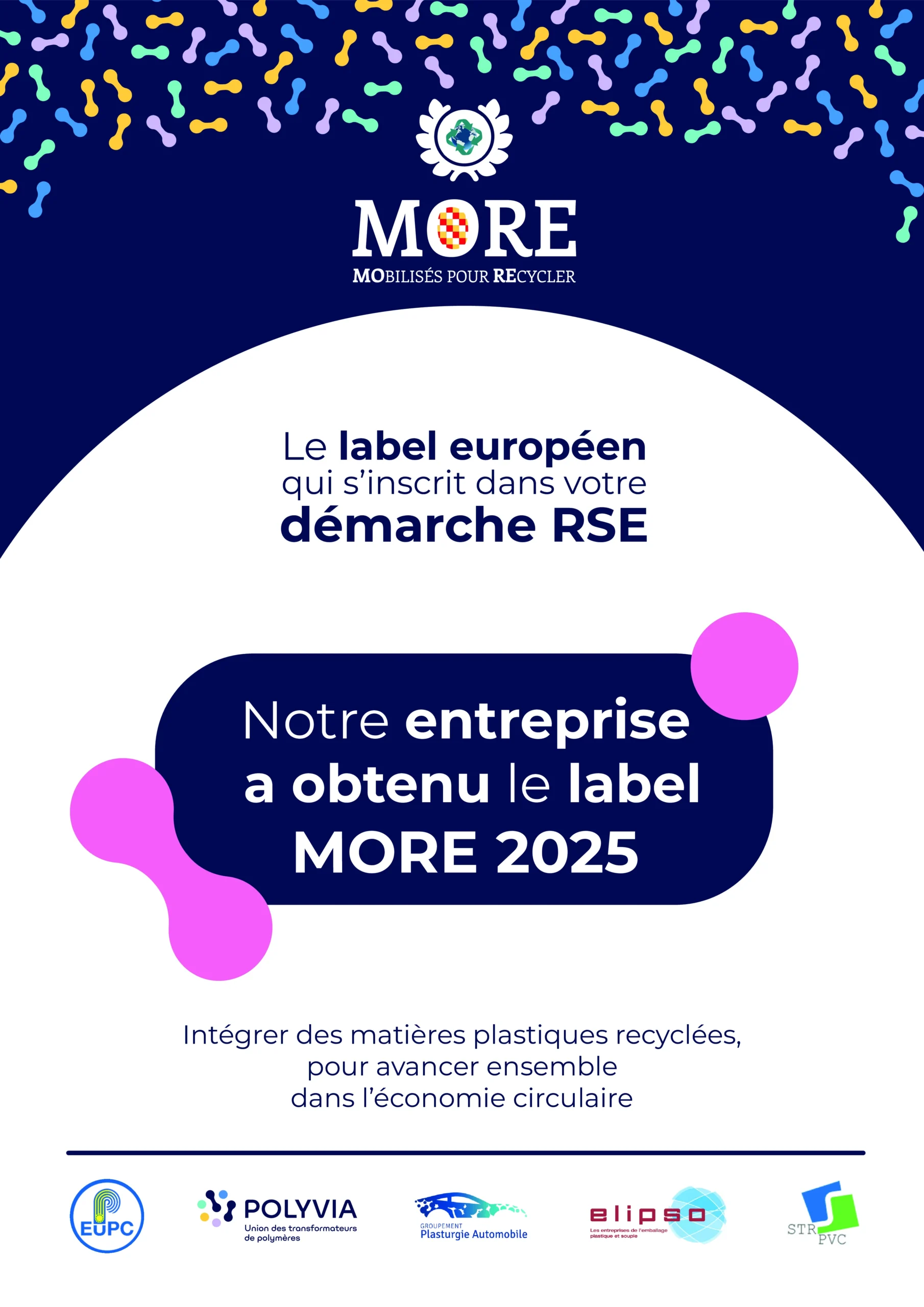 Ce label, créé par la Fédération de la Plasturgie, s’inscrit pleinement dans notre démarche RSE visant à intégrer les enjeux du développement durable dans notre stratégie.